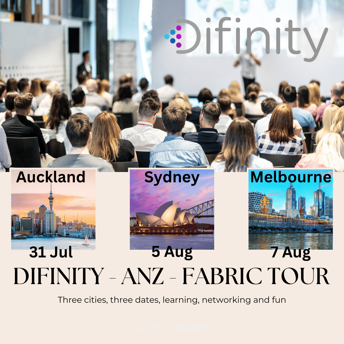Difinity is the largest Microsoft Data, AI, Power BI, and Fabric Conference in New Zealand and Australia, focusing on Microsoft Fabric and Data and AI technologies of Microsoft. IT Decision Makers, Developers, Business Analysts, IT Professionals, Data Engineers, Data modelers, ETL developers, Data Architects, BI Managers, BI Professionals, Database Administrators, Architects, Digital & Big Data business leaders, and Consultants will gather for two consecutive days of learning.