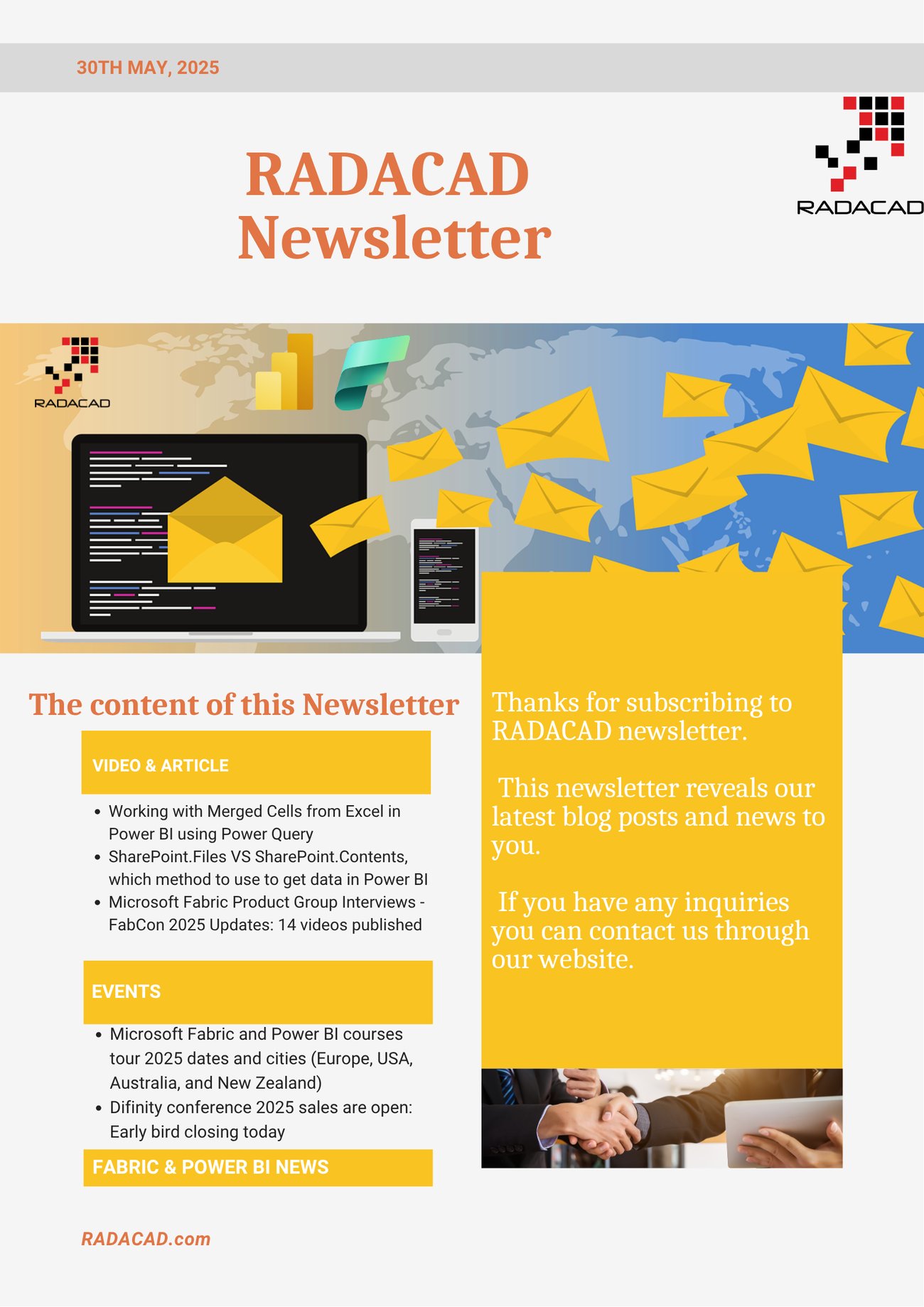We hope you are doing well. Reza published 14 videos from the series of interviews with the Microsoft Fabric Product team, also the early-bird tickets are closing today for Difinity conference in Australia and New Zealand, and early-bird tickets are closing for some of the cities for Fabric and Power BI world tour courses. We also have some new blog articles and videos that help you in Power BI and Fabric work. Let's get into all of that in today's newsletter.