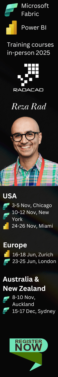 Seats are limited. We want you to take advantage of this opportunity to learn the cutting-edge technologies of Microsoft Power BI and Fabric and use them to step up your career ladder. Reza developed the training content for courses in the Rookie to Rock Star format (similar to our popular Power BI courses). These are in-person training sessions.