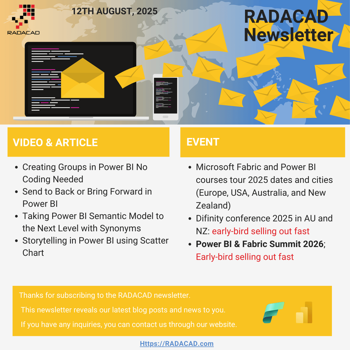 We hope you are doing well. Power BI & Fabric Summit, the biggest and most popular virtual event of the year in this subject area, is open for sales. The early-bird registration for some cities on the Fabric and Power BI world tour is closing soon. We also have some new blog articles and videos that help you with Power BI and Fabric work. Let's get into all of that in today's newsletter.