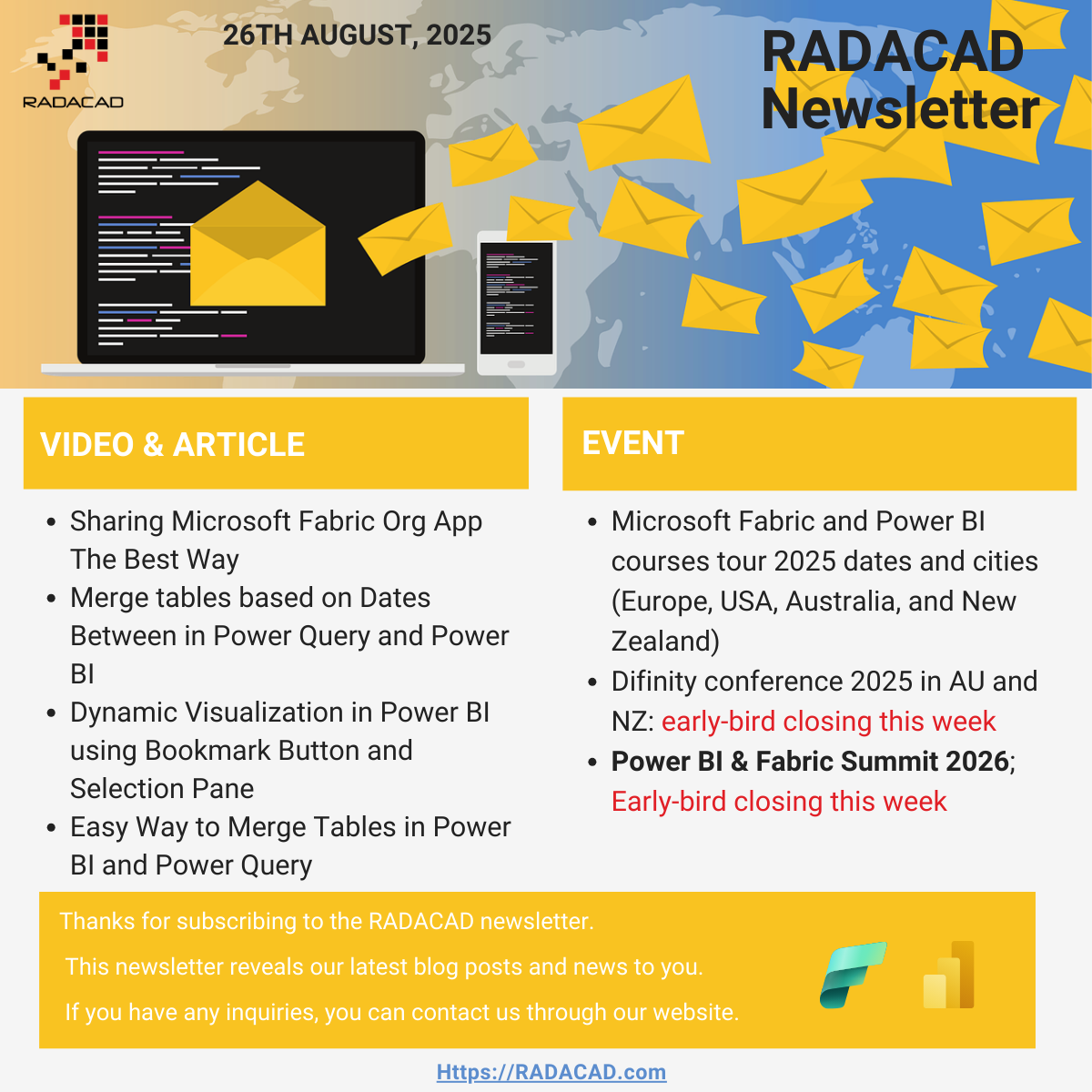 week. The early-bird registration for some cities on the Fabric and Power BI world tour is closing soon. We also have some new blog articles and videos that help you with Power BI and Fabric work. Let's get into all of that in today's newsletter.