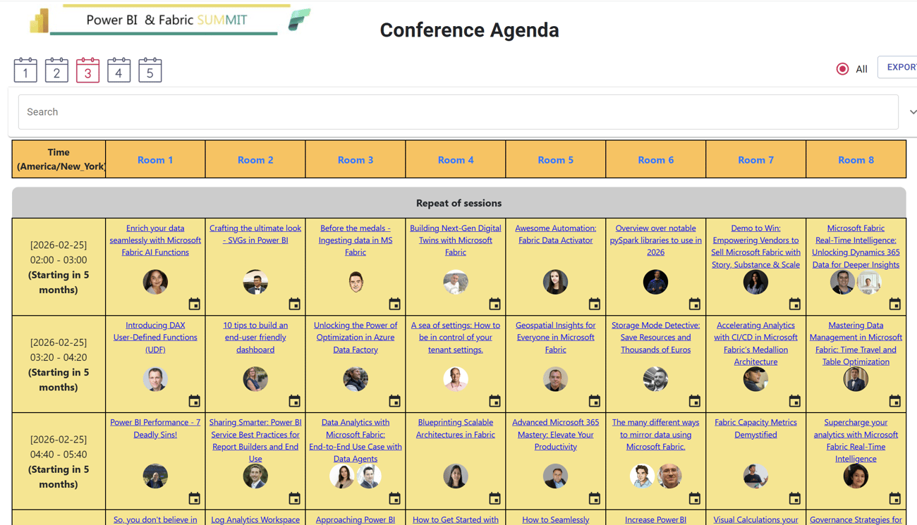 This year, we will have more than 140 sessions from more than 140 speakers worldwide. The sessions and speakers will be announced in the next few weeks. The summit will be in five consecutive days at multiple time zones, bringing the world-class content and learning of Microsoft Fabric and Power BI to your desk at the office and at home.